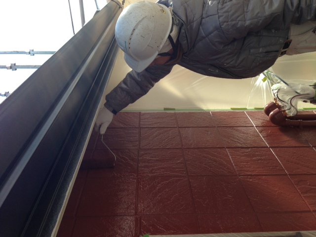 外壁の上塗りを行いました。