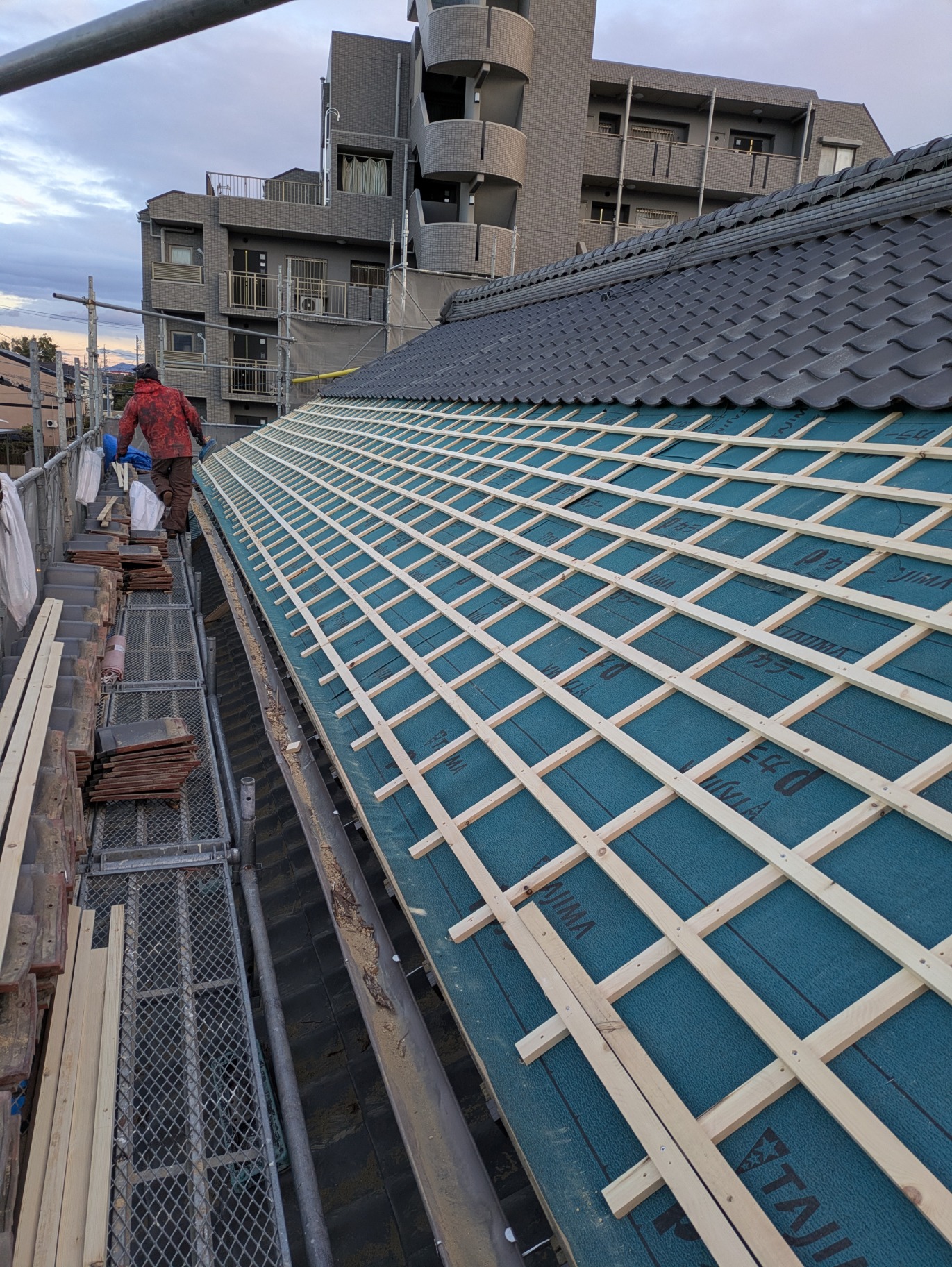屋根の折れた部分の修理